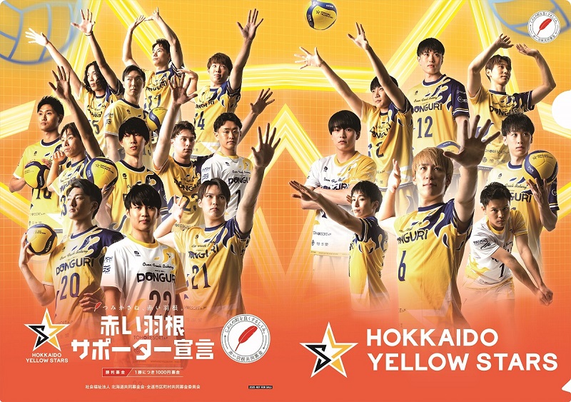 北海道イエロースターズ様のご協力をいただき、会場内にて募金活動を行います。会場内に設置の募金ブースにおいて一定額以上募金をしていただいた方には、赤い羽根共同募金オリジナルグッズの「缶バッジ」、「クリアファイル」をお礼として進呈いたします。皆さまのご協力をお待ちしております。