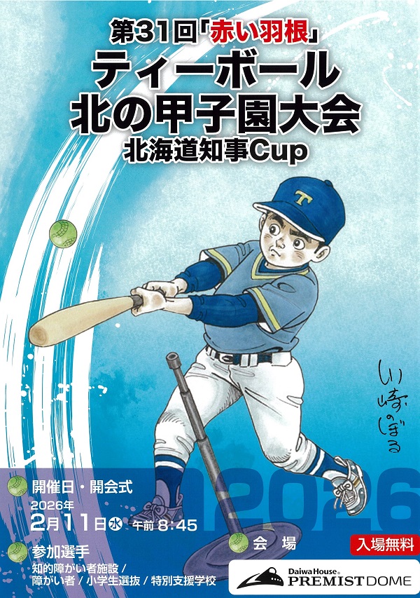 「赤い羽根」ティーボール北の甲子園大会北海道知事Cupは、“手をつなごう心をつなごう” を大会スローガンに、道内の知的障がい者施設・養護学校や地元小学生からの選抜チームなど、あわせて約1,500人が参加する大会です。ティーボール(※)競技を通じ、年齢や障がいの有無を問わず、参加する全てのみなさんとの相互の交流を深めることのできる貴重な機会として開催されています。
